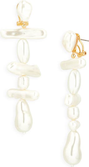 Glossy faux pearls seem to tumble down these linear earrings that bring a sense of fashionable fun to your look.
