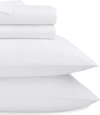 - 4-Piece California King Sheet Set includes: 1 Flat sheet: 110"W x 106"L, 1 Fitted sheet: 72"W x 84"L; fits mattresses up to 16" and 2 King pillowcases (side openings): 21"W x 41"L