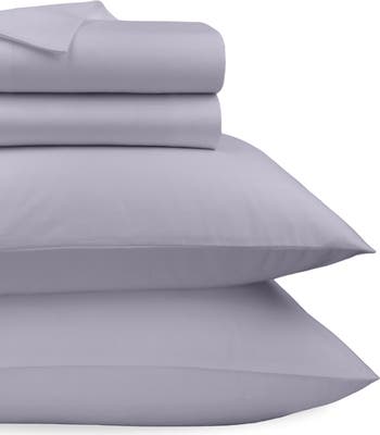 - 4-Piece King Sheet Set includes: 1 Flat sheet, 1 Fitted sheet; fits mattresses up to 16" and 2 King pillowcases (side openings)