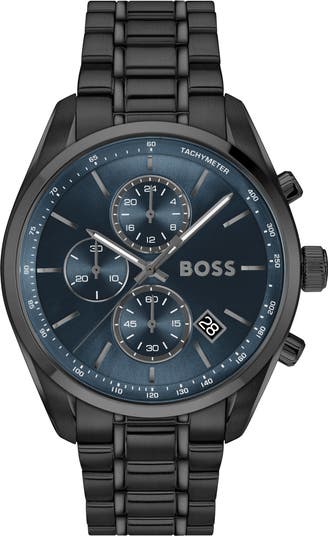 A trio of subdials and bar indexes create a streamlined profile on this quartz-powered watch detailed with a convenient date window and set on a classic bracelet. Chronograph functionality and a tachymeter bezel add robust elements to this versatile timepiece.
