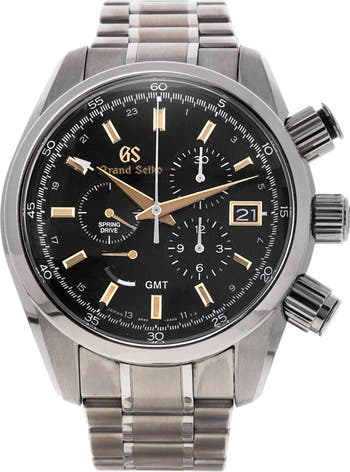 Featuring a bold black dial, goldtone accents and a titanium bracelet, this preowned watch is the essence of polished precision and longevity. The unique Spring Drive caliber combines a trio of sub-eyes and a date window with the high precision of an automatic watch for superior timekeeping.