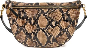 Snakeskin-embossed leather upgrades an '80s-inspired belt bag featuring an oversized silhouette ideal for storing essentials while on the go. An optional strap converts for waist or crossbody wear.