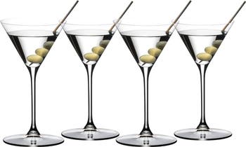 The Grape@Riedel Martini Cocktail Glass Set includes four 7-ounce glasses designed for serving martinis and classic cocktails with style and precision. The iconic V-shaped bowl enhances aroma while helping maintain a chilled temperature, making it ideal for martinis, cosmopolitans, and spirit-forward drinks. Crafted from high-quality clear glass, these elegant and durable cocktail glasses offer a refined presentation and excellent value with the Buy 3 Get 4 set.