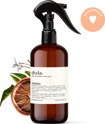 Linen and Room Spray crafted with premium, natural ingredients to elevate your space and awaken your senses. This versatile air freshener is perfect for adding a refreshing touch to clothes, pajamas, pillows, sheets, cushions, sofas, curtains, closets, and drawers. Simply spray to infuse any fabric or room with a unique, uplifting scent that brings joy with every breath. TASTING NOTES: Citrus notes of grapefruit and mandarin green notes of grapefruit peel, cassis and jasmine. Apply one or two sprays in each room. Use whenever needed to refresh and scent your spaces. It can also be applied on fabrics, linens, and clothing for a gentle fragrance. INGREDIENTES / INGREDIENTS : Agua (Water), Alcohol Desnaturalizado (Alcohol Denat), Polisorbato 20 (Polysorbate 20), Fragancia (Fragrance).