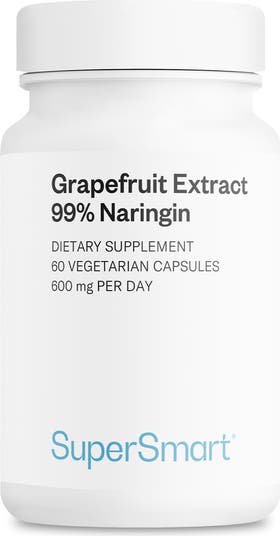 - GSE GRAPEFRUIT EXTRACT - This supplement is extracted from the seed, skin, and pulp of the grapefruit with a high concentration of naringin. 99% STRENGTH - The fruit, rich in fiber, is highly standardized to 99% naringin, a potent flavonoid with powerful antioxidant properties. NON-GMO, GLUTEN FREE, VEGETARIAN FRIENDLY - Supersmart offers you an outstanding quality and choice of supplements for women and men, difficult to find elsewhere. Recommended Use - Take 2 capsules a day. Each vegetarian capsule contains 300 mg of grapefruit extract. Contains Grapefruit (Citrus Paradisi) Peel Extract Standardized to 99% Naringin - 600 mg