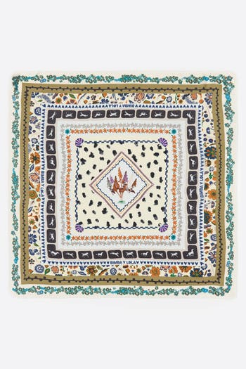 Modal shawl with logo print. Finished with frayed edges. Approx. 120 ��� 120 cm.