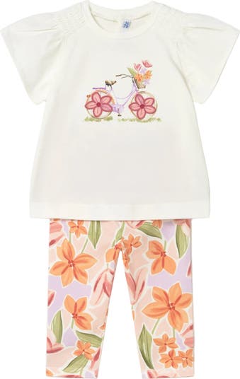 Playful and comfortable, this two‑piece outfit pairs a soft short‑sleeve top with cheerful printed leggings for an easy everyday look. The whimsical bicycle graphic adds a fun touch, while the stretchy bottoms keep little ones free to move.