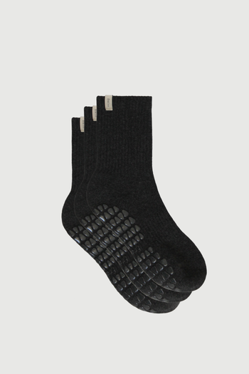For the ones that love the basics, this set includes 3 Fraise classic crew grip socks in Graphite. This soft, breathable studio staple features compression arch support and a proprietary grip design that's made to stick.