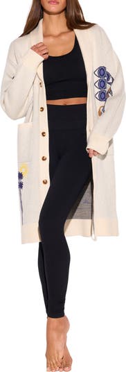 Spread the sunny vibes everywhere you go with the intarsia graphic on the back of this long cardigan knit with a relaxed fit and eternal optimism.