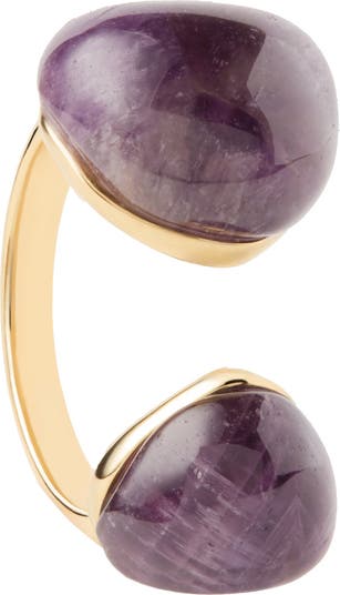 Gold-plated sculptural open ring embellished with two organic purple gemstones
