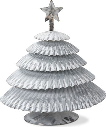 Gray Crimped Tin Tree with Star Topper Tabletop Decoration