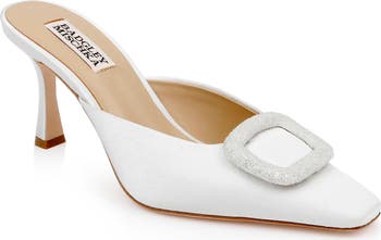 A covered buckle brings stunning dimension to the instep of a swoon-worthy mule set on a cushioned footbed and tapered heel.