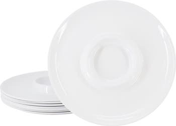 Break out the snacks at your next party or gathering with this Gibson Home Grayson 12 Piece 12 Inch Round Melamine Chip and Dip Platter Set. The large 12 inch diameter holds plenty of your choice of chips, cookies, pretzels, and more. A separate section in the middle is perfect for your favorite dips, sauces, jams, or a second snack. Even when fully stocked with goodies, these dishes are super lightweight thanks to the melamine construction, which is also break resistant so no party fouls. Serve up good times with these Gibson chip and dip sectioned platters!