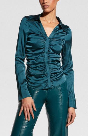 Designed to flatter, our Grayson Blouse has a ruched front – making you look stunning, even if you’ve been skimping on pilates! The hidden side zipper makes it easy to slip on while fitting snug. Tuck into our Tell Me Lies Recycled Leather Trousers for a full look.
