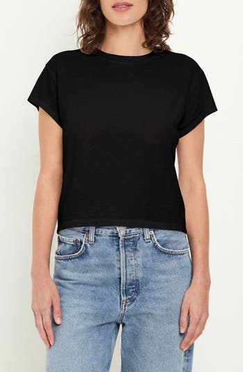 A curvy cropped hem finishes this staple T-shirt cut from a softly slubbed Supima® cotton that's so soft and comfortable it won't have time to migrate to the bottom of your stack.