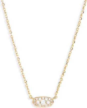 Pavé cubic zirconia twinkle inside the oval-shaped pendant of an elegant everyday necklace.