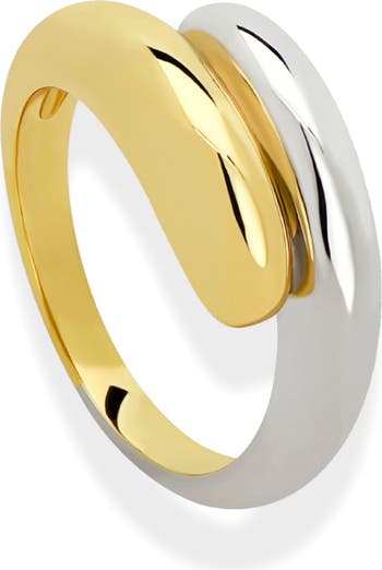 Wrap your finger in a modern mix of metals with this bypass ring sculpted in a domed silhouette that glamorously catches the light.