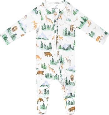 A gentle print looks sweet on these soft and stretchy footed pajamas made with an easy front-zip closure.