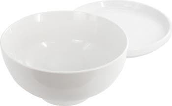 Gibson Home Great Essentials 2 Piece 7.8 Inch Ceramic Serving Bowl with Dual Purpose Lid, Alternate, color, White