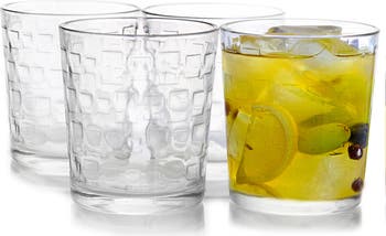 Great Foundations 4-Piece 13 oz. Double Old Fashion Glass Set, Square Pattern