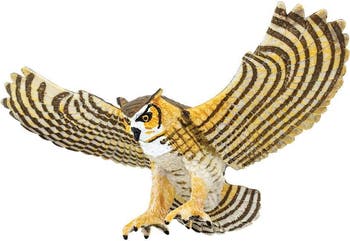 Explore the fascinating world of the Great Horned Owl! As one of the most widely distributed owls in the Americas, the Great Horned Owl is revered for its distinct hooting sound and strong, majestic presence. This Great Horned Owl figurine is expertly painted to reflect the bird's distinct features, providing a realistic representation of this magnificent creature. Our Great Horned Owl figurine is carefully sculpted and hand-painted, bringing out the bird's intricate details and imposing stature. It serves as an excellent educational tool, teaching children about different bird species and the importance of biodiversity, while also encouraging imaginative play. The figurine measures 5.5 inches wide and 2 inches tall, about the size of a soda can on its side. Crafted from durable, high-quality materials that are non-toxic and BPA-free, it ensures a safe and enjoyable play experience for kids aged 3 years and above. The Great Horned Owl figurine is part of Safari Ltd.'s Wings of the World Birds collection, a series of lifelike and detailed bird figures. Whether used for educational purposes or imaginative play, this figurine is sure to inspire a love for wildlife and nature conservation in children.