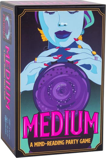 DUPLICATE Medium is a social word game of reading your friends’ minds! In the game Medium, players act as psychic mediums, harnessing their powerful extra-sensory abilities to access other players’ thoughts. Together in pairs, they mentally determine the Medium: the word that connects the words on their two cards, and then attempt to say the same word at the same time! In teams of two, you and a partner will have a hand of word cards (BANJO, TROPICAL, SHORT, BIGFOOT, PICNIC, etc). You’ll each play a card, then attempt to CREATE A PSYCHIC CONNECTION together to think of the word that somehow connects them. The correct answer is whatever word your partner thinks of, so you’ll have to think alike to find it! Together, you’ll count down: “three...two...one…” then say the same word at the same time. And when you do, it feels perfect.