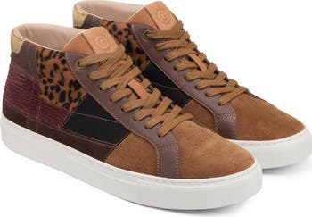 A splash of plaid adds color to a bold sneaker built from upcycled surplus material for a patchwork vibe and low-impact production.