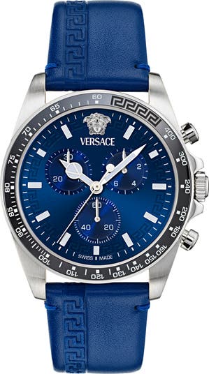 Refined opulence and signature Versace style exude from this chronograph with a sunray dial, three sub-eyes, a 3D Medusa head and an iconic Greek-key pattern.