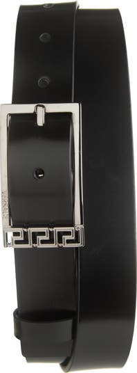 Versace Greca Leather Belt, Main, color, Black-Versace Gold