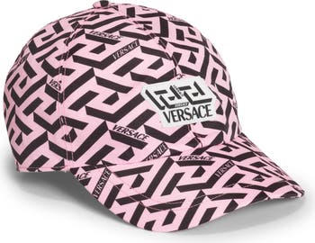 Versace puts an Escheresque spin on its Greek key motif, creating a maze-like pattern with reversed-out branding across this colorful ball cap.