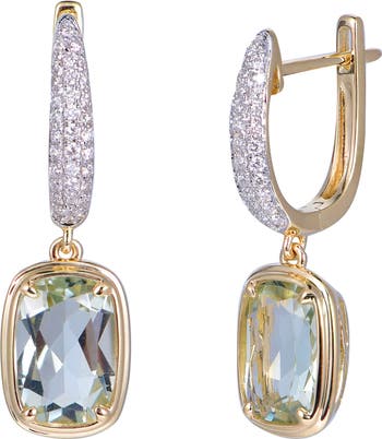3.01ct Green Amethyst Cushion Cut Earrings in 14K Yellow gold with natural diamonds