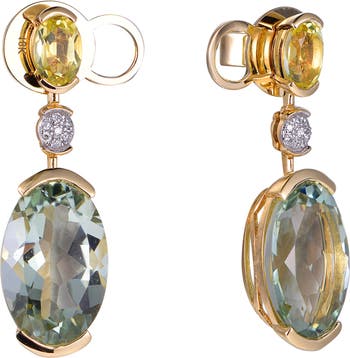 Green Amethyst & Lemon Quartz Earrings with Diamonds