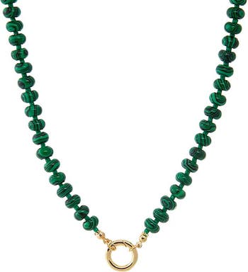 Bring the energy with the Green Beaded Clicker Necklace by Adina Eden, a vibrant Necklace for any look. Built to blend or stand out, this women's fashion necklace is available in Malachite. Whether you're grabbing coffee or dressing up for dinner, this piece adapts to your mood, your outfit, and your pace—no questions asked. Match this gold plated necklace with selections from the Lariat Necklaces collection to add richness and depth to your vibe. It blends into your style while still standing out beautifully.