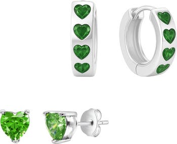 Green Hearts Hoop & Stud Earring Set