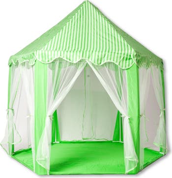 Your little prince and princess will have hours of creative fun with this hexagon fantasy castle play tent! Kids can play all day in this portable play tent indoors or out. Fast and easy set up/breakdown with no tools required. Zippered carrying bag included for convenient storage.