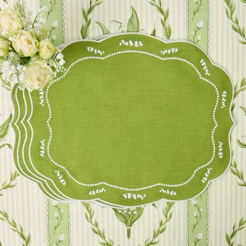 - Set Includes: x4 Lily of the Valley Green Linen Placemats