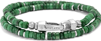 Vibrant green Heishi beads meet polished stainless steel in this double wrap bracelet, offering a clean and fresh accent designed for everyday edge. Each piece is handmade and one-of-a-kind, and may vary slightly in size, shape, and color.