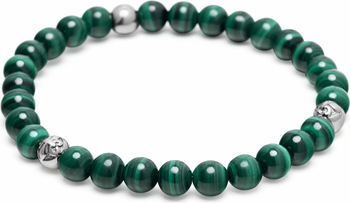 - Green malachite beads with hypoallergenic stainless steel logo balls