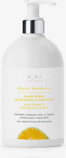 Experience the sunny and bright Green Mandarin fragrance by ACCA KAPPA. Surrounding the body with the freshness of Mediterranean Citrus Fruits, Green Mandarin harmonises precious essences to leave you feeling refreshed and revitalised. Ideal for skin that reddens and chaps easily, this gentle liquid hand soap effectively cleanses without altering the skins hydro-lipid balance. Contains botanical extracts of echinacea and thyme with normalizing, sanitizing and skin-purifying properties. Does not contain: SLS, Parabens, GMOs, Petrolates, Chemical Antioxidants. Ingredients Aqua (Water), Coco-Glucoside, Sodium Coco-Sulfate, Glycerin, Glyceryl Oleate, Parfum (Fragrance), Echinacea Angustifolia Extract, Thymus Vulgaris Extract [Thymus Vulgaris (Thime) Extract], Tocopheryl Acetate, Citric Acid, Sodium Chloride, Benzyl Alcohol, Ascorbic Acid, Sodium Benzoate, Potassium Sorbate, Limonene, Hexyl Cinnamal, Linalool, Citral.