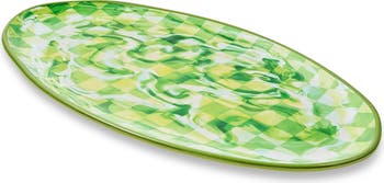 Green Marble Check Oval Melamine Platter