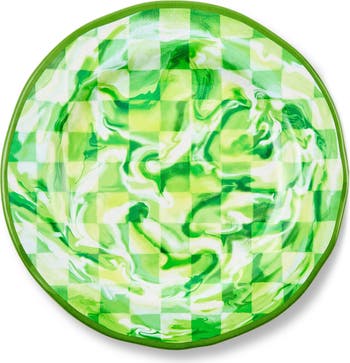 Green Marble Check Set of 4 Melamine Dinner Plates