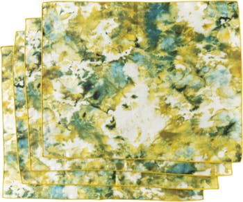 Add whimsy to your table with our Green Marble placemats available in either a Green, or Gold trim. The myriad of green, yellow, and blue adds a painterly effect to the tablescape. Pair it with our matching napkins or runner.