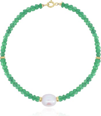 - Green Onyx Bead Pearl Bracelet