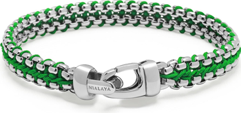 A timeless bracelet hand-braided with durable nylon in vibrant green and finished with glossy, hypoallergenic stainless steel hardware. This versatile piece is handmade and may vary slightly in size, shape, and color. Designed for effortless style worn solo or stacked.