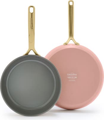 Upgrade your kitchen equipment with two smooth and professional-grade frying pans crafted from gorgeous tinted ceramic and steel.