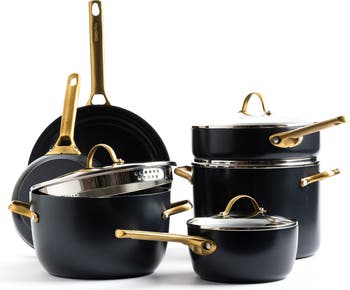 Upgrade your kitchen equipment with this smooth, stylish and professional-grade cookware set crafted from gorgeous tinted ceramic and steel.