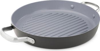 Smooth, stylish and professional grade, this grill pan is made with Magneto™ induction technology, using ferromagnetic particles reinforced with copper in the base for induction efficiency and heat retention. It features a nontoxic, nonstick Thermolon Minerals coating that resists damage and won't ever release harmful fumes or chemicals—even if you accidentally overheat or thermal shock your pan. Plus, it's durable and dishwasher safe, and it offers remarkably even heat distribution.
