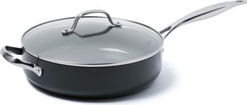 Smooth, stylish and professional grade, this sauté pan is made with Magneto™ induction technology, using ferromagnetic particles reinforced with copper in the base for induction efficiency and heat retention. It features a nontoxic, nonstick Thermolon Minerals coating that resists damage and won't ever release harmful fumes or chemicals—even if you accidentally overheat or thermal shock your pan. Plus, it's durable and dishwasher safe, and it offers remarkably even heat distribution. A glass lid lets you keep your eye on the food while it's cooking, and the whole thing can be popped in the oven or used on ceramic, electric, gas or induction heat surfaces.