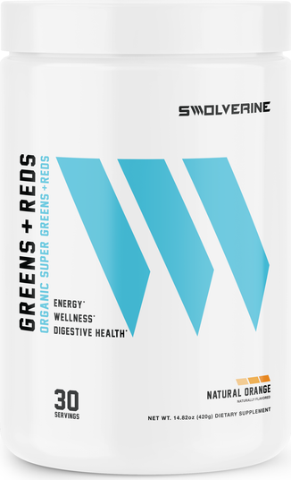 - GREENS + REDS — Fuel Your Body.* Optimize Digestion.* Elevate Your Performance.* A daily superfood blend of nutrient‑dense organic greens, antioxidant‑rich reds, digestive enzymes, prebiotics, and probiotics to support gut health, immune function, and overall wellness—without artificial fillers or proprietary blends. Designed for athletes and active individuals to complement training, recovery, and everyday vitality. ** Why Choose Swolverine® Greens + Reds? → Nutrient‑Dense Superfood Profile* — Organic greens (e.g., spirulina, wheatgrass, chlorella) plus reds from berries, beet, goji, and açaí to support daily micronutrient and phytonutrient intake.*→ Supports Gut Health & Digestion* — Prebiotics, probiotics, and digestive enzymes help support nutrient breakdown, absorption, and a healthy gut microbiome.*→ Immune & Antioxidant Support* — Adaptogens and mushrooms (e.g., reishi, astragalus) with polyphenol‑rich fruits help support immune function and antioxidant defenses.*→ Daily Energy & Recovery Support* — Phytonutrients and enzymes help support energy metabolism and manage exercise‑induced oxidative stress for day‑to‑day readiness.*→ Transparent Formula, No Proprietary Blends* — Disclosed ingredients with no unnecessary fillers or artificial additives for informed choices.* Who It’s For → Athletes & Active Individuals: Support micronutrient intake and training‑aligned wellness.*→ Anyone Focused on Gut Health: Support digestion, nutrient absorption, and microbiome balance.*→ Everyday Immune Support: Help maintain immune function with antioxidant‑rich botanicals and mushrooms.*→ Busy Lifestyles & Health Enthusiasts: A convenient way to increase daily intake of greens and reds.* How It Works (At a Glance) Greens supply vitamins, minerals, and chlorophyll; reds provide polyphenols, anthocyanins, and nitrates; together they help support antioxidant defenses, circulation during exercise, and overall wellness.Digestive enzymes (e.g., papain, protease) help break down nutrients,* while prebiotics + probiotics support a healthy gut environment and regularity.*Adaptogens/mushrooms (reishi, astragalus) help support immune function and a healthy stress response.* Ingredients & Amounts (Per Serving) → Organic Wheat Grass [2,500 mg] — Source of vitamins and minerals to support daily wellness.*→ Organic Spirulina [2,500 mg] — Nutrient‑dense algae to support antioxidant capacity and normal immune function.*→ Organic Chlorella [2,000 mg] — Chlorophyll‑rich algae to support antioxidant defenses.*→ Organic Beet Root [1,000 mg] — Naturally occurring nitrates to support nitric oxide and circulation during exercise.*→ Organic Chia Seeds [1,000 mg] — Source of fiber and ALA omega‑3s to support digestive and nutritional balance.*→ Bilberry [500 mg] — Anthocyanin‑rich berry for antioxidant support.*→ Blueberry [500 mg] — Polyphenol‑rich berry to support healthy antioxidant status.*→ Pomegranate [500 mg] — Polyphenols that support antioxidant defenses and exercise recove
