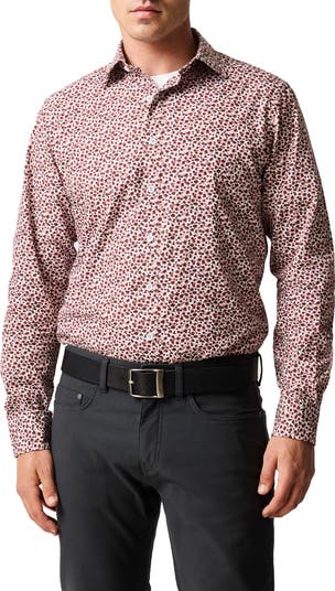 A tiny hazy, abstract-inkblot print adds subtle distinction to this sport shirt of Italian-woven cotton poplin elevated with mother-of-pearl buttons.